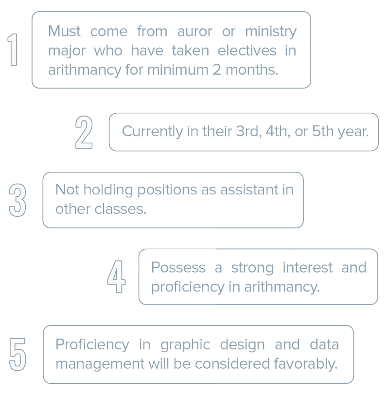 Kelas ini ditujukan untuk para siswa tingkat lanjutan di Hogwarts yang ingin menyelami kompleksitas ilmu Arithmancy. Jika kamu seorang introvert, kelas ini akan menjadi salah satu zona nyamanmu untuk belajar; karena Profesor Everard menggunakan minimalism teaching methods di dalam kelasnya. Metode apakah itu? Berikut penjelasannya: